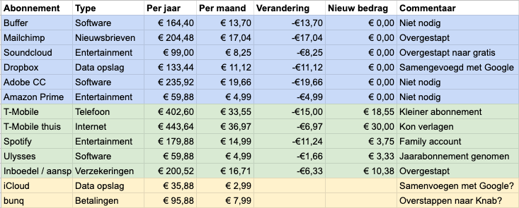 Door eens in de zoveel tijd je financiën eens rustig onder elkaar te zetten, bespaar je zo een paar doezoe. Nouja, ik.
