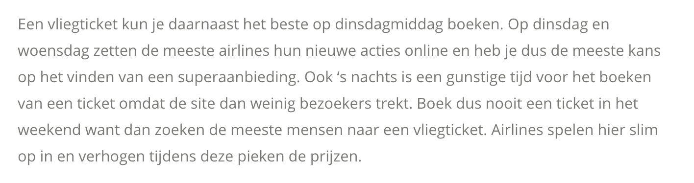 Lastminute is het allerdomste wat je kunt doen want prijzen voor vliegtickets worden vlak voor de vlucht opeens heel veel duurder (komt straks een grafiekje voorbij). Lastminutes bestaan wel hoor, maar het is natuurlijk nooit precies de plek waar je naar toe wilt op je gewenste datum.