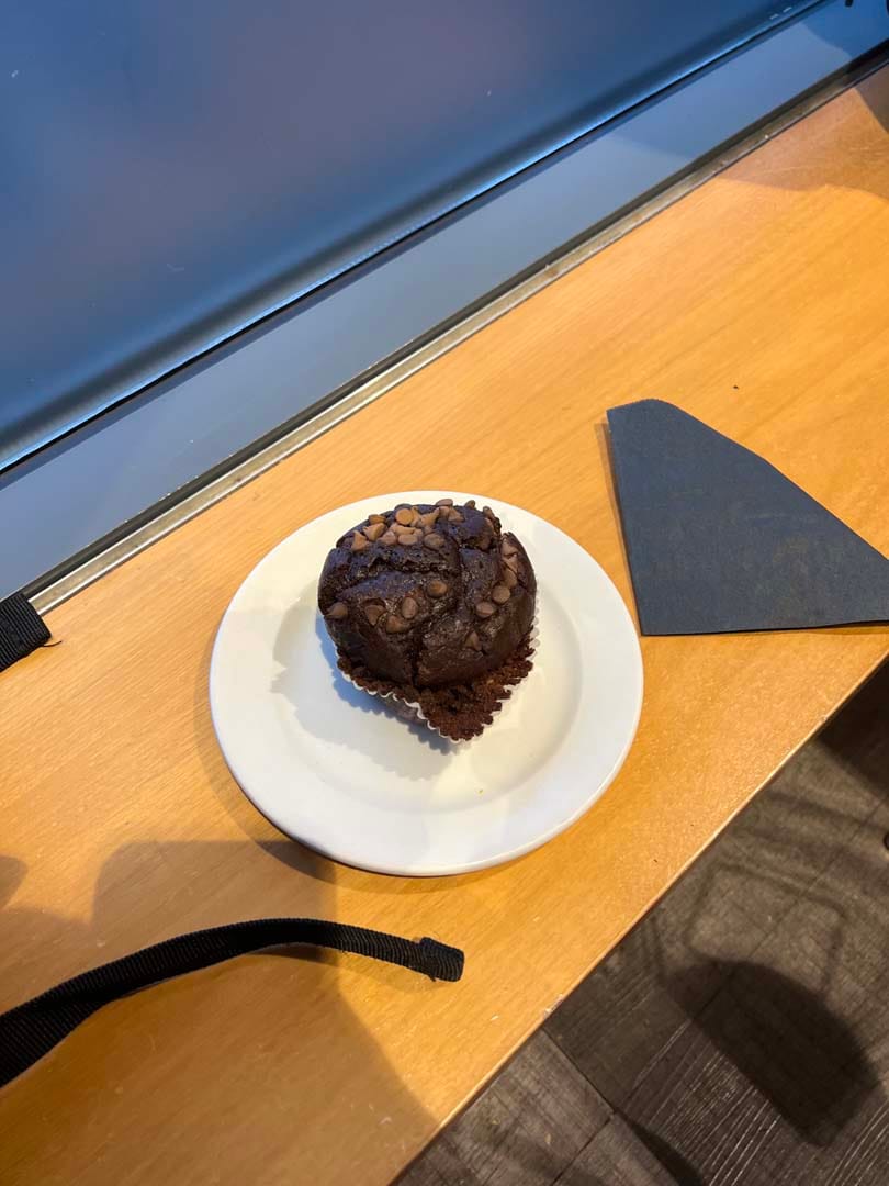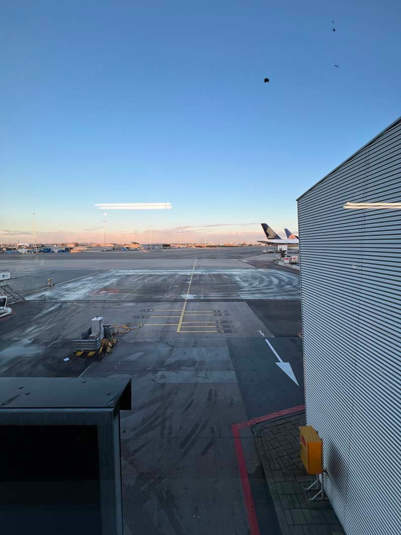 De bus bracht me in nog geen drie kwartier naar de luchthaven waar een paspoortzelfscan en geen rij bij de veiligheidscontrole me in vier minuut veertien de lounge in brachten. Die lounge was ook prima en megagemiddeld, met iets te droge muffins, maar wel Sprite op de juiste temperatuur gebracht. Het nadeel van niet op de hoogte zijn van het Nederlandse gebruik genaamd 'Sinterklaas' is dat de kerstmuziek nog veel eerder begint. Gelukkig heb ik noise-cancelling headphones met white noise.