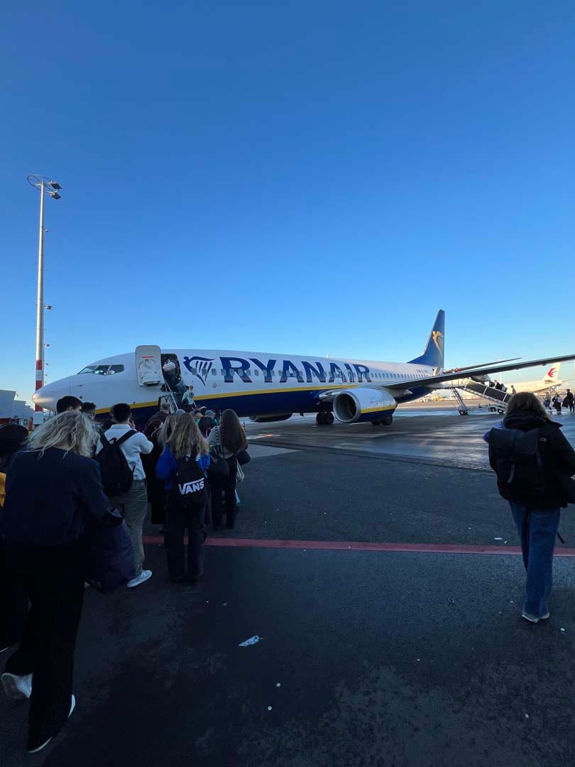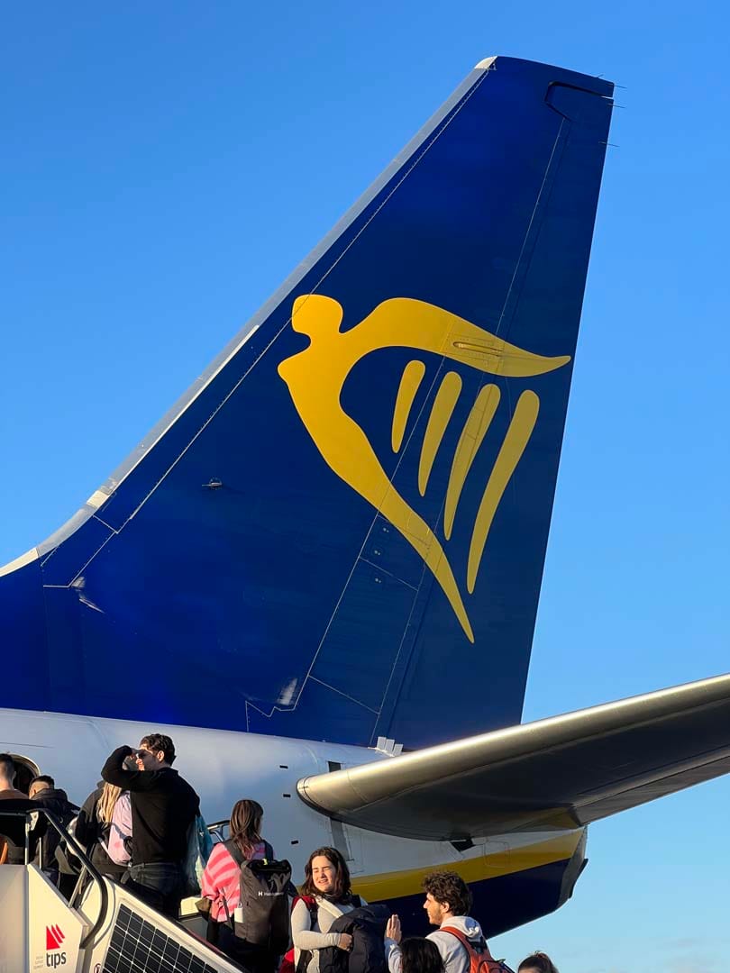 Ryanair: geen toestel, een zaaltje, trap boarding, tail view en een middle seat