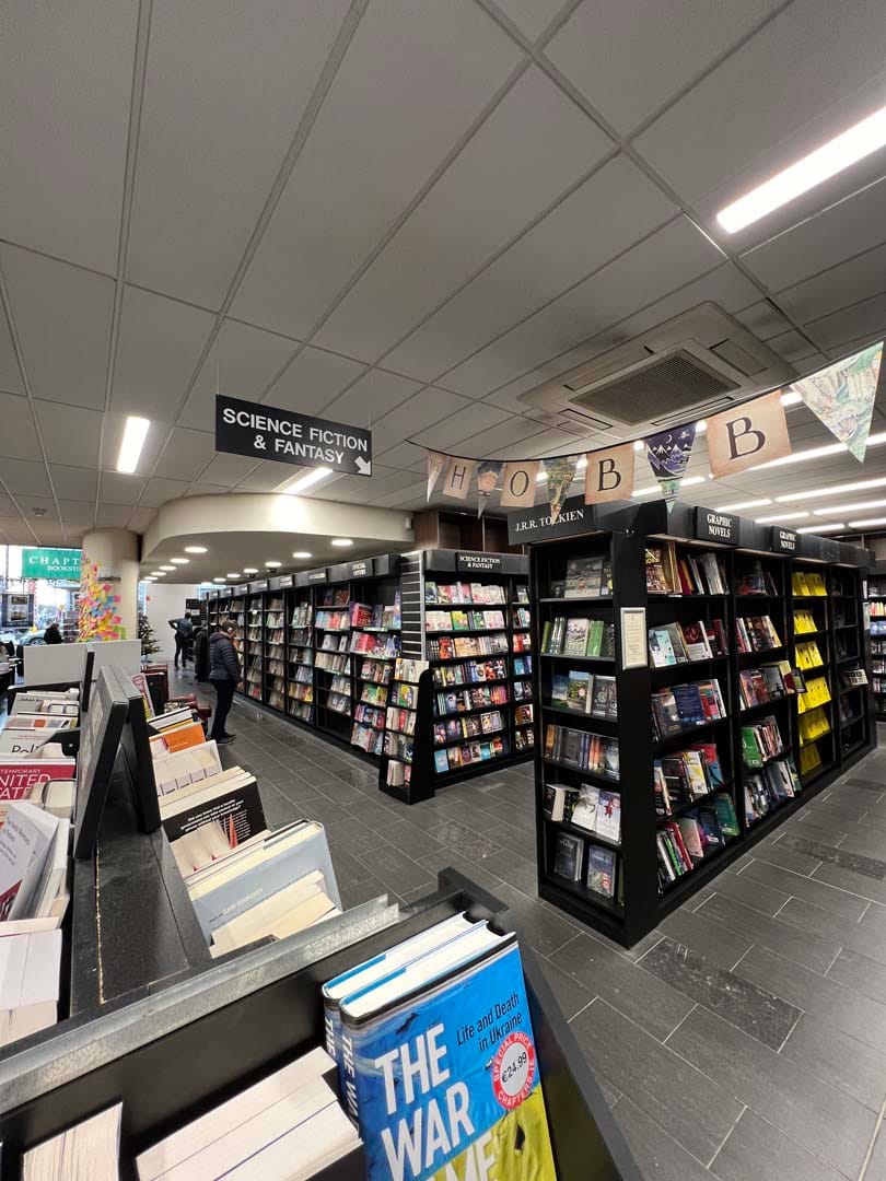 Ik opende mijn Google Maps en zag dat ik een sterretje had geplaatst bij een boekhandel. Een Uberrit van €10,04 bracht me naar die boekhandel, toevallig in het gebied dat een paar dagen ervoor gedeeltelijk voorzien was van de nodige brandhaarden omdat mensen boos waren en het daarna op publieke voorzieningen hadden gemunt.