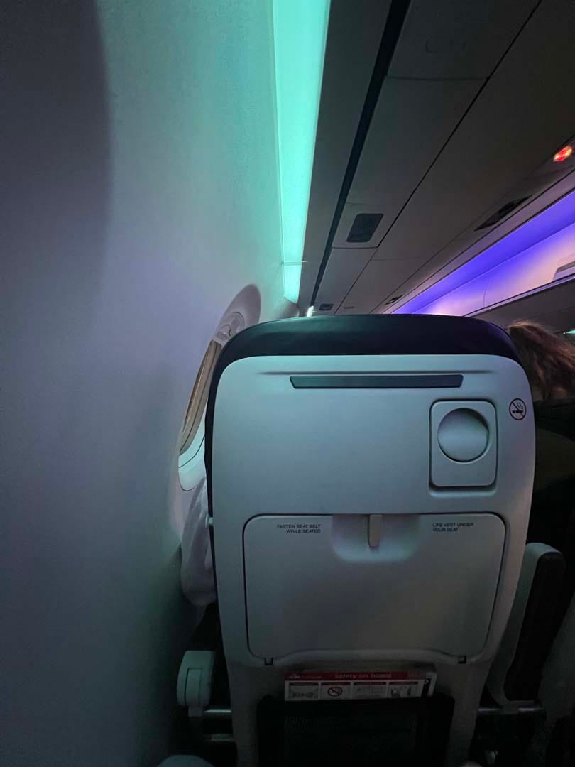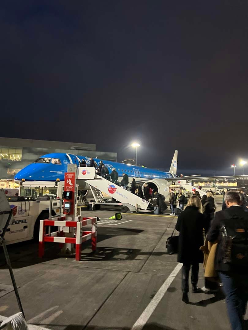 De vlucht van KLM werd uitgevoerd met een Embraer E195-E2. Dit is óók een narrowbody (van Braziliaanse makelij trouwens), maar dan met vier stoelen per rij (twee aan weerszijden van het gangpad) en ik moet op het eind toch nog even toegeven dat dit toestel veel lekkerder rook dan die Ryanairkist. De sfeerverlichting was ook mooier en als we het toch over verschillen hebben, dan kun je bij Ryanair aan boord wel fluiten naar een gratis broodje kaas.