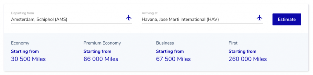 Dat is vaak, in punten, even duur (of goedkoper, zoals je ziet) als vanaf iedere andere luchthaven in KLM’s regio Europa. En soms is het zelfs extra voordelig om van zo’n plek ergens naar toe te vliegen dan vanaf Amsterdam, omdat je minder belastingen betaalt.