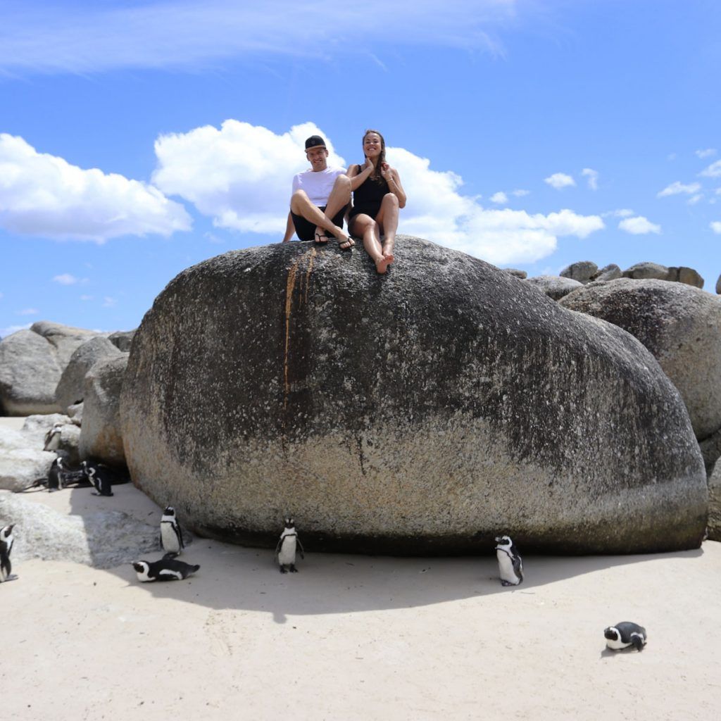 Een vrij bijzondere ervaring (ook al doet iedereen en z'n moeder dit) is natuurlijk dat je op een strand kunt rondsjouwen terwijl er ook pinguïns rondsjouwen. Op ongeveer een uurtje rijden van Kaapstad (ligt eraan waar je begint met rijden) vind je Boulders Beach. Neem wel de zuidelijke ingang want dan kun je het strand op. De noordelijke ingang is een houten looppadvlonder waar je met die eerder genoemde iedereen en z'n moeder vanaf een afstandje achter een hek staat te fotograferen met je iPad.