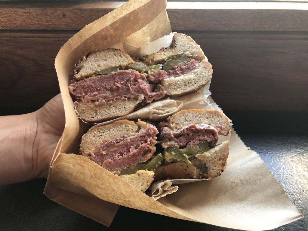 Zit ook om de hoek en voor €5-€6 heb je een prima bagel met bijvoorbeeld salted beef of, voor als je een idioot bent, zalm (ieuw). Dus: prijs en smaak en locatie.