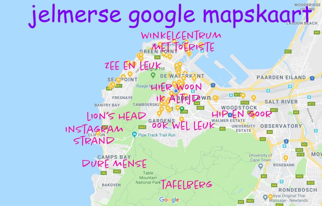 Lieve lezer, zoals u misschien weet, ben ik niet echt fan van het maken van lijstjes met tips over bestemmingen. Ik vind namelijk andere dingen leuk dan u en mijn mening is n(i)et zo irrelevant als die van u. Toch bevat dit stukje tekst mijn favoriete plekken en bezigheden in Kaapstad, omdat u regelmatig blijft vragen naar waar ik verblijf, waarom ik (zo vaak) ga en waar ik eet/drink/beweeg. En nu kan ik (en u ook) gewoon deze post aanraden.